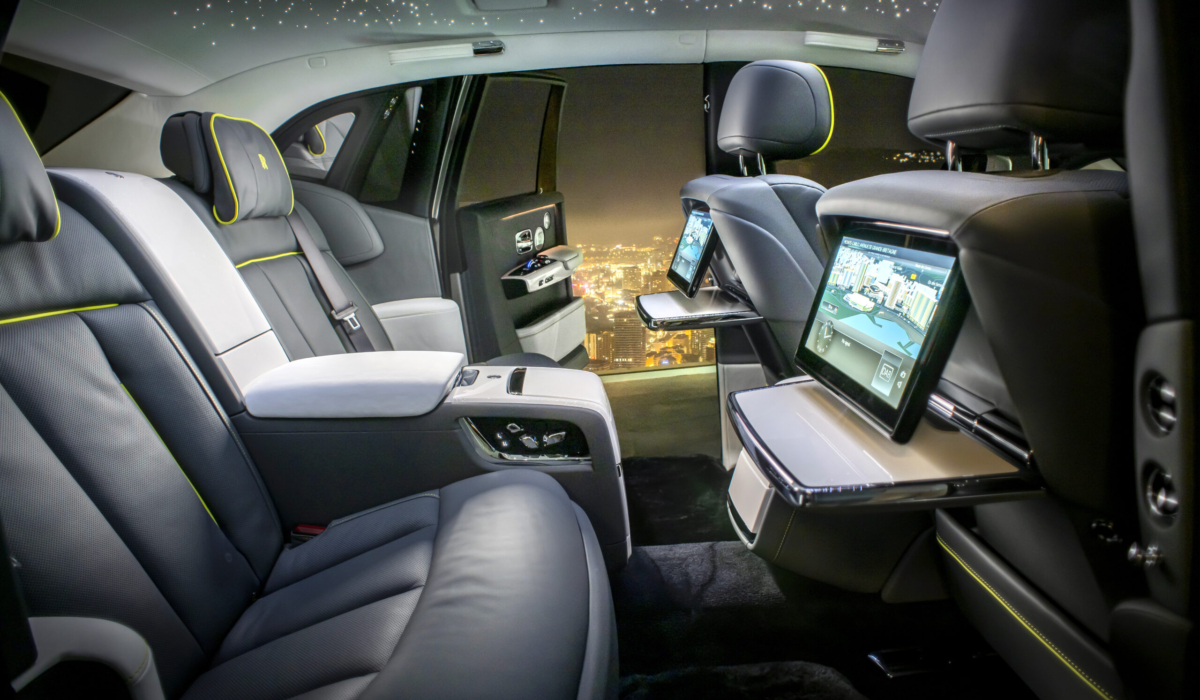 대쉬보드 '더 갤러리 - Fiddleback / Rivenslate' 中 선택, 라운지 시트, 원톤 실내인테리어, TV시스템, 뒷자석 엔터테인먼트 시스템, 비즈니스 테이블, 양털매트, 기본제공 우드 (Smoked Chestnut / Royal Walnut / Walnut Burr / Oak Cluster / Paldao / Piano Black / Smoked Eucalyptus), 스모킹 패키지 (선택 적용)